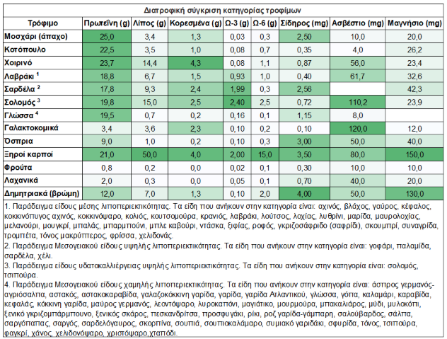 Σύγκριση αλιευμάτων με άλλες ομάδες τροφίμων