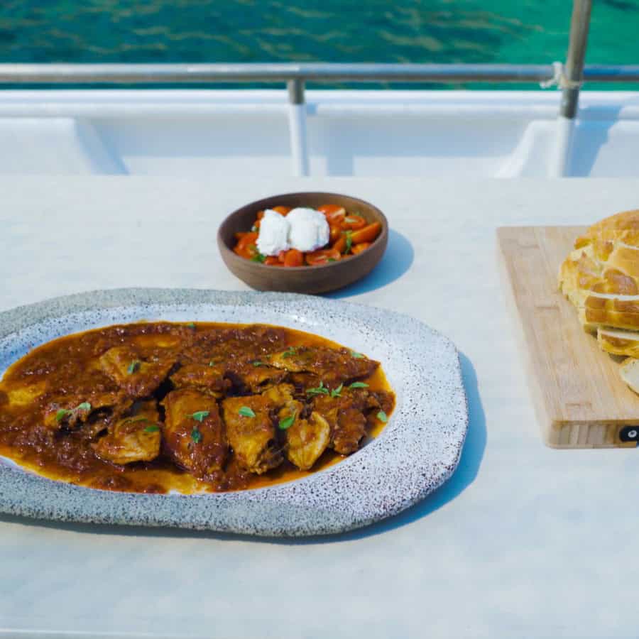 Σερβίρουμε τον Γερμανό μπουρδέτο με τη σαλάτα.